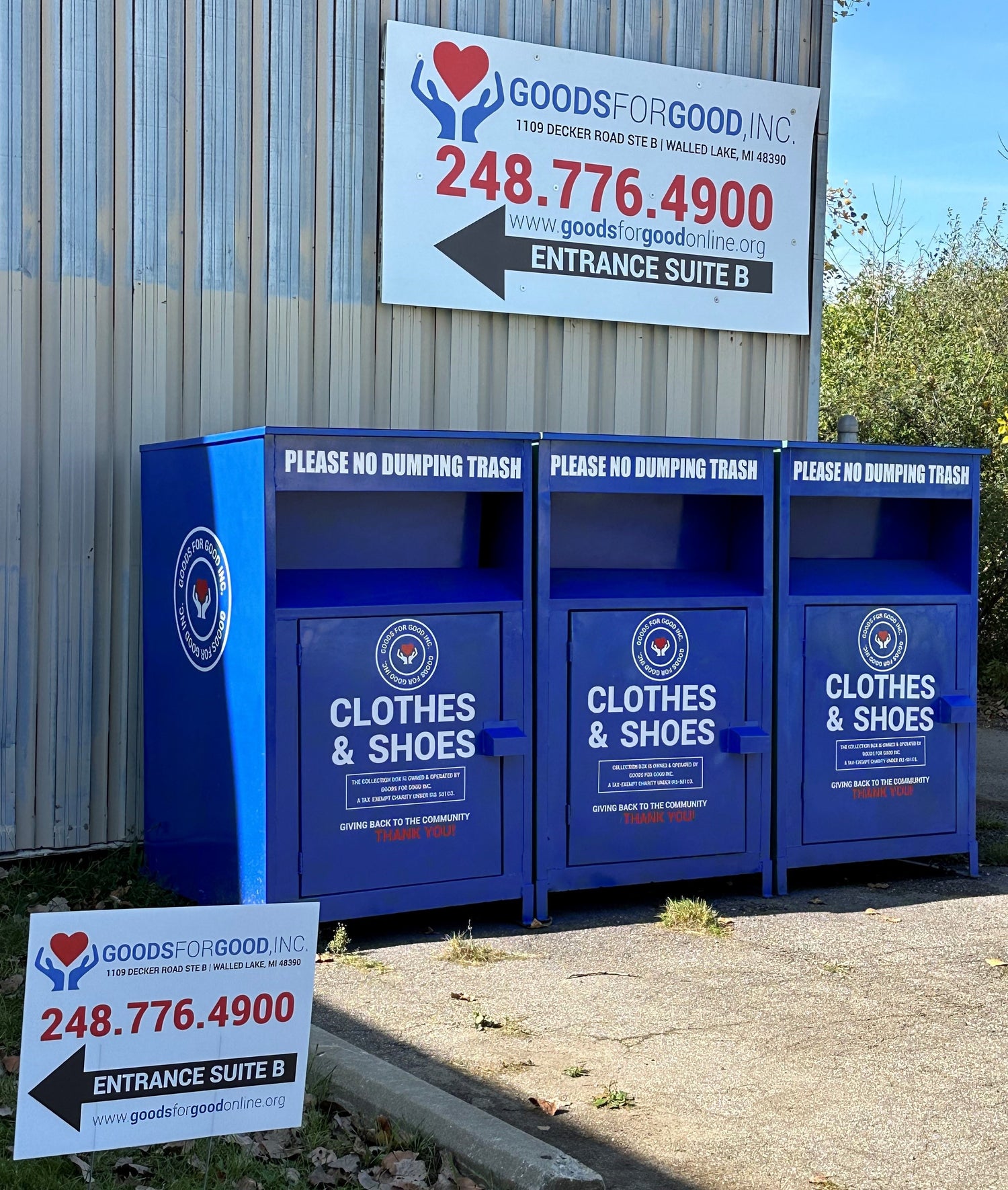 PLEASE NO DUMPING TRASH AND NO JUNK (ONLY CLOTHES AND SHOES)